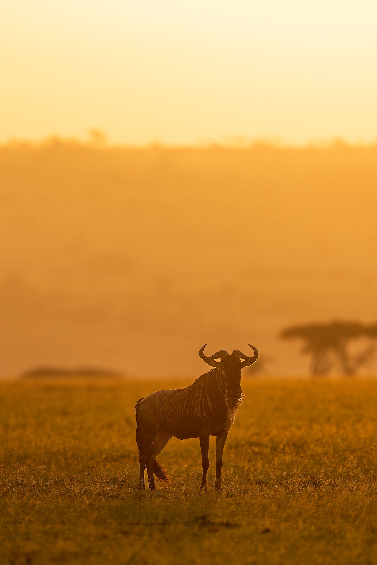 Bathed in the warm light of the setting sun, a lone wildebeest stands as a symbol of the great migrations that define Africa's savannas. Among these epic journeys, the Loita migration in Kenya is one of the lesser-known, yet equally vital, spectacles of nature. Each year, thousands of wildebeest and zebras embark on this arduous trek from the Loita Hills to the Mara, driven by the search for fresh pastures and water. This migration, although smaller than the famed Serengeti migration, plays a crucial role in maintaining the delicate balance of the Mara ecosystem.